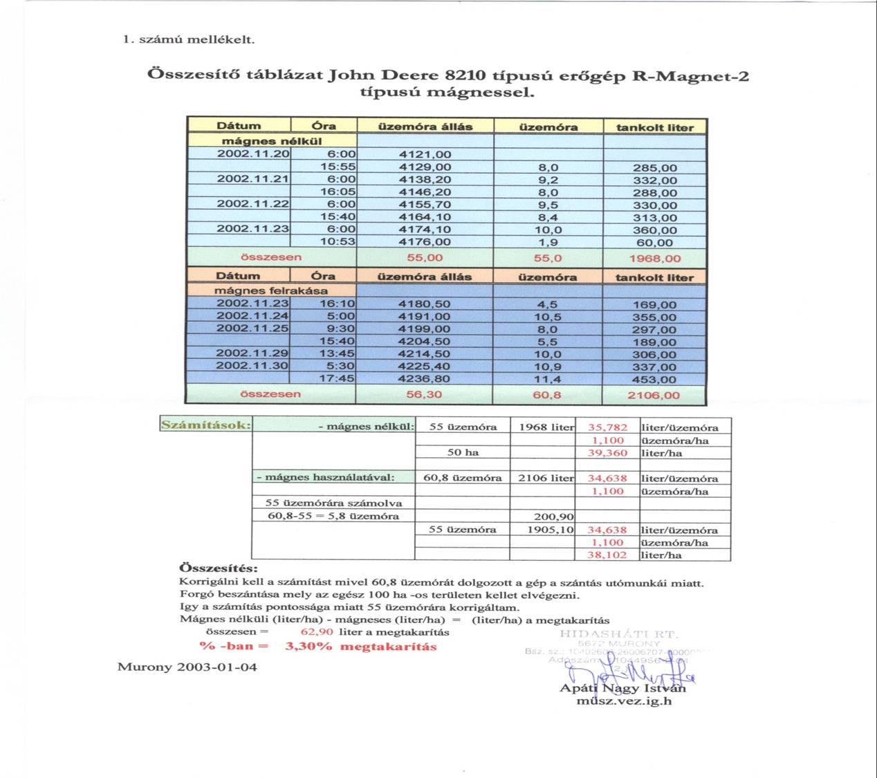 A változást füstgázelemző berendezésekkel mérhetővé lehet tenni.